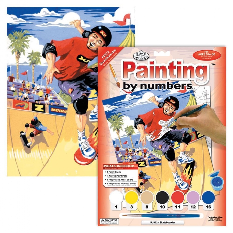 Schilderen op nummer 22.5 x 30 cm Skateboarder