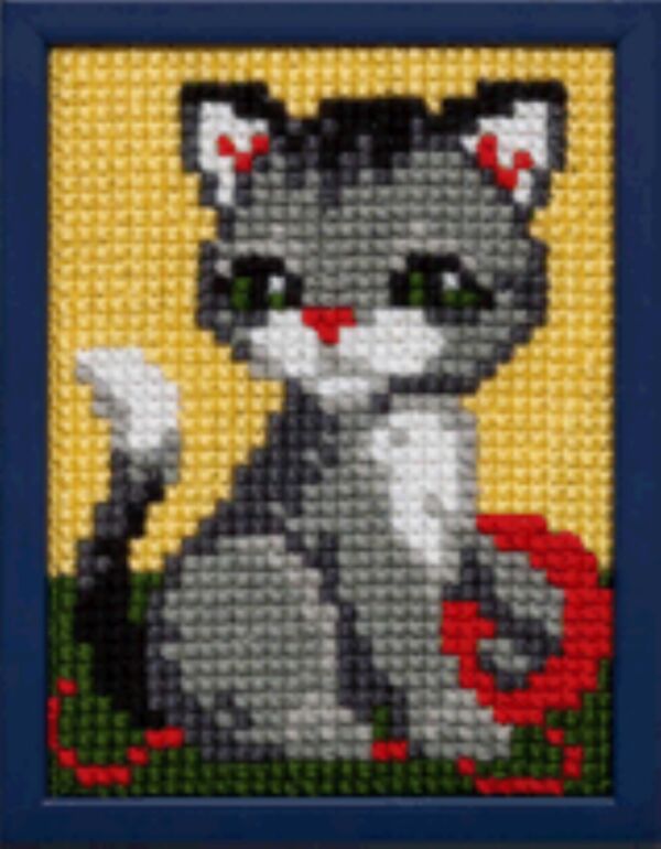 Kinder borduurpakket in kruissteek 18 x 24 cm poesje