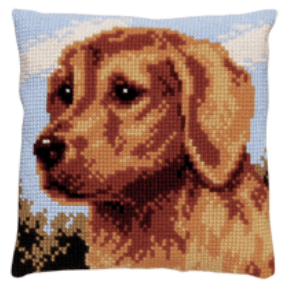 Kussenpakket in kruissteek, 40x40cm, hond/Golden retriever
