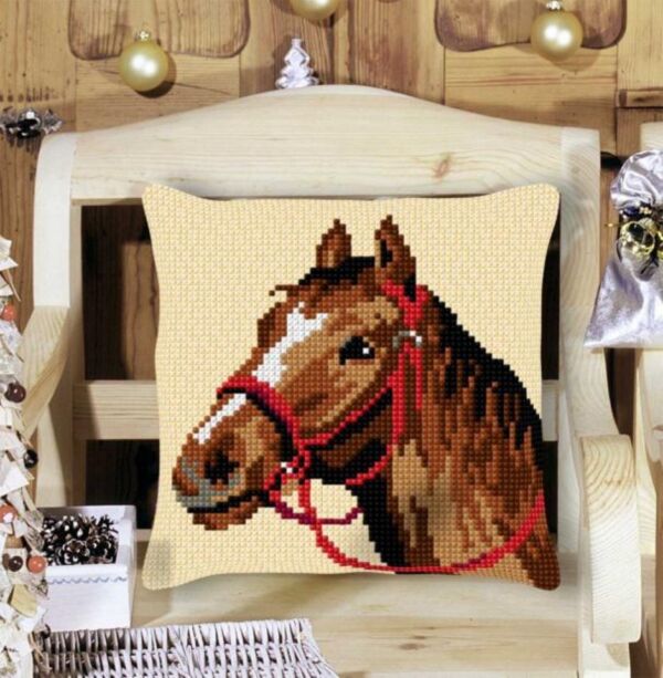 Kussenpakket in kruissteek, 40x40cm, paardenhoofd