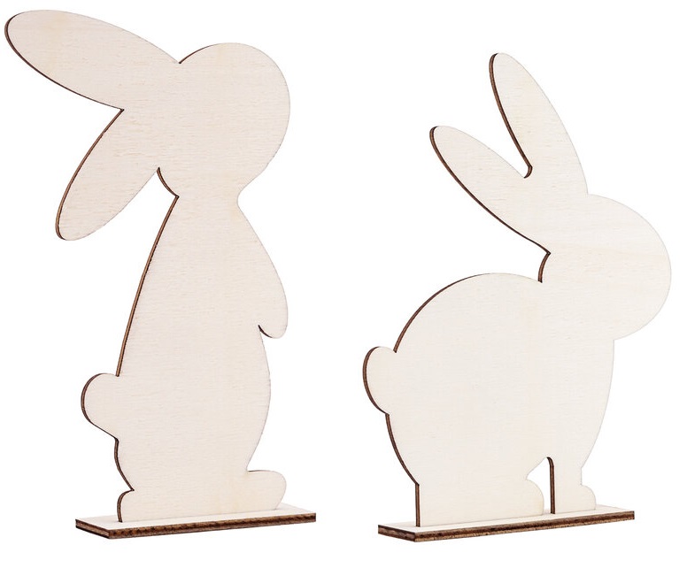 Decoratieve houten hazen met insteekdeel, 2 stuks