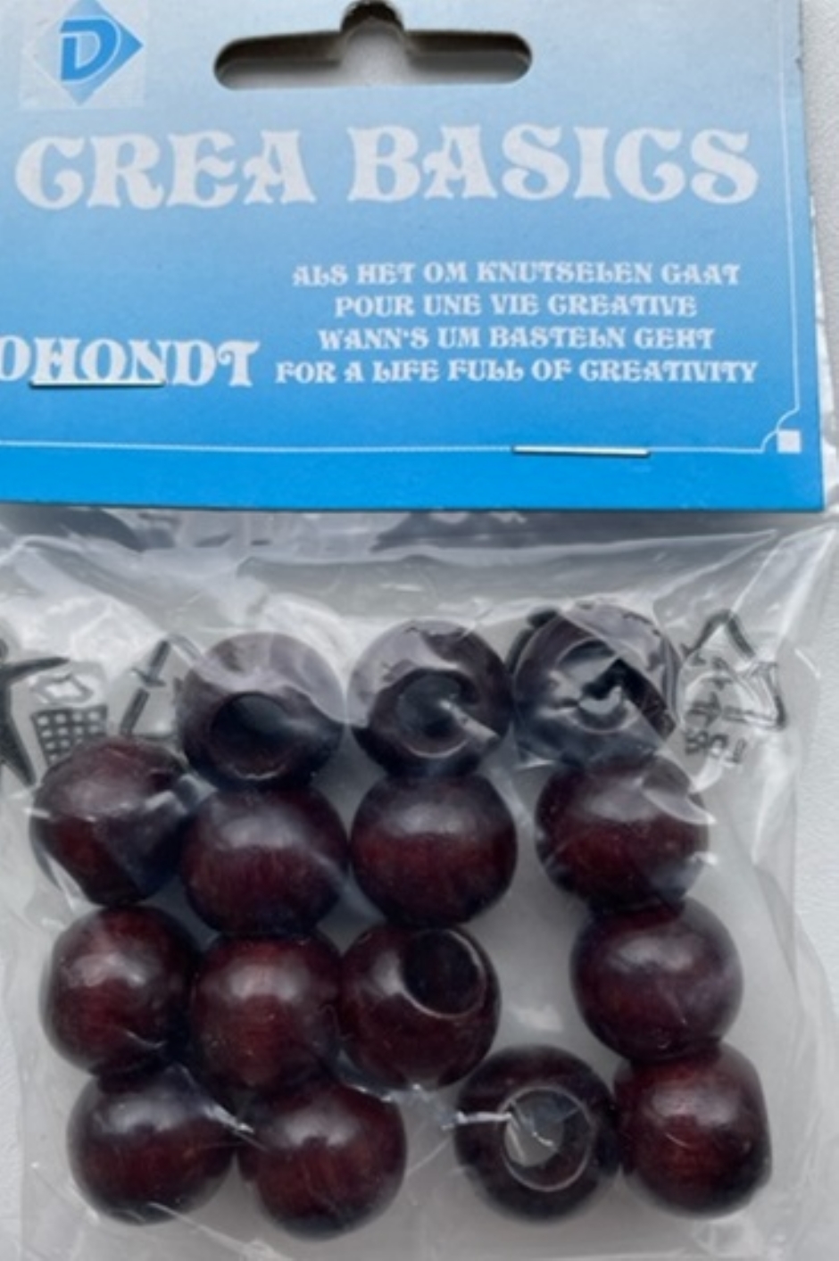 OUTLET Macrame kralen van hout met groot gat, 15 mm, 15 stuks, bruin
