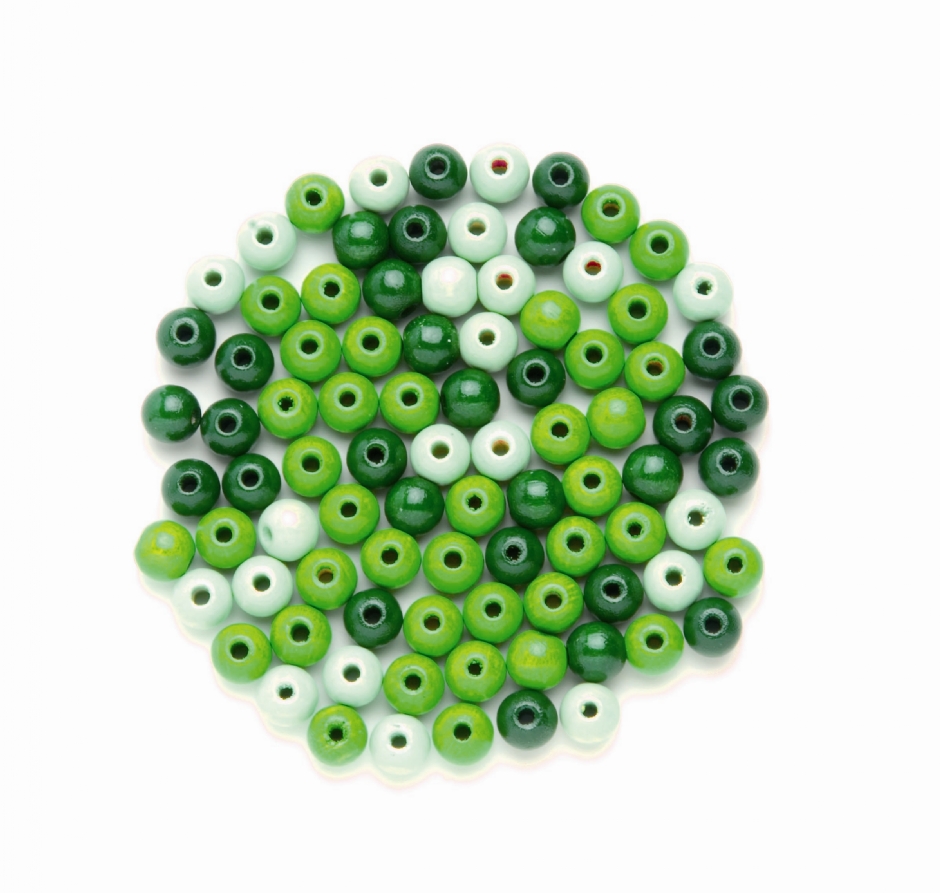 Houten kralen, rond, 10 mm, 47 stuks, groenmix